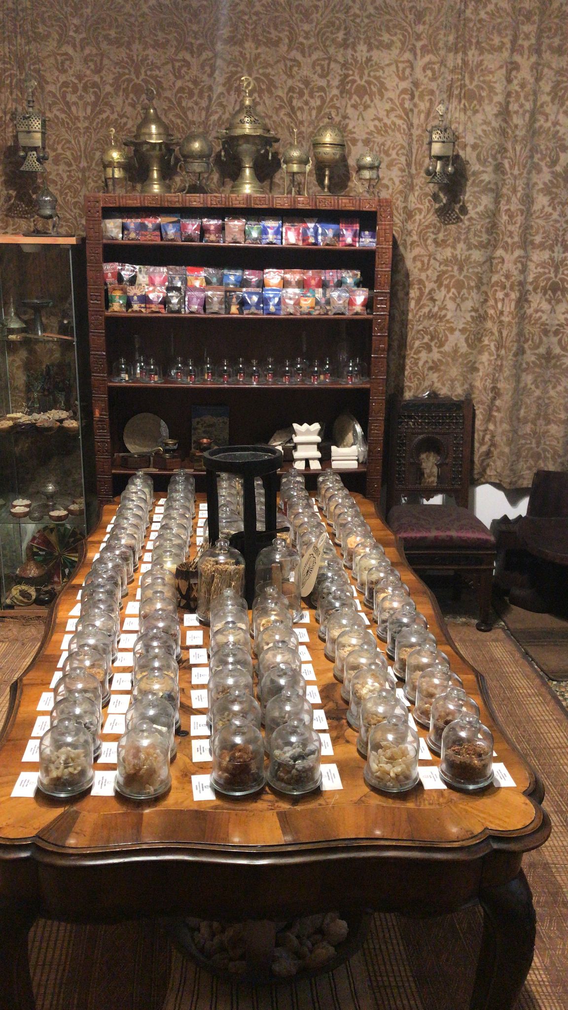 The second part is the heart of the experience: an olfactory exploration of the real raw materials. You smell pure frankincense from Dhofar, dark myrrh from Somalia, creamy sandalwood, smoky oud, wild labdanum, resinous mastic, and other aromatic treasures. Each material carries its own story, its own geography, and its own role in Venetian life. This is not the world of modern perfumery; this is the world of caravan trails, monastic pharmacies, Renaissance artists, and merchants evaluating purity by touch and scent.